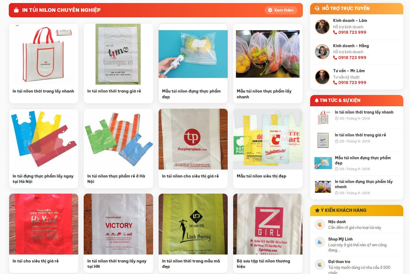 Showroom online đầy đủ: Website hiện tại như một catalogue điện tử, khách chỉ cần vào link là xem được đầy đủ các mẫu túi và quy cách in ấn.